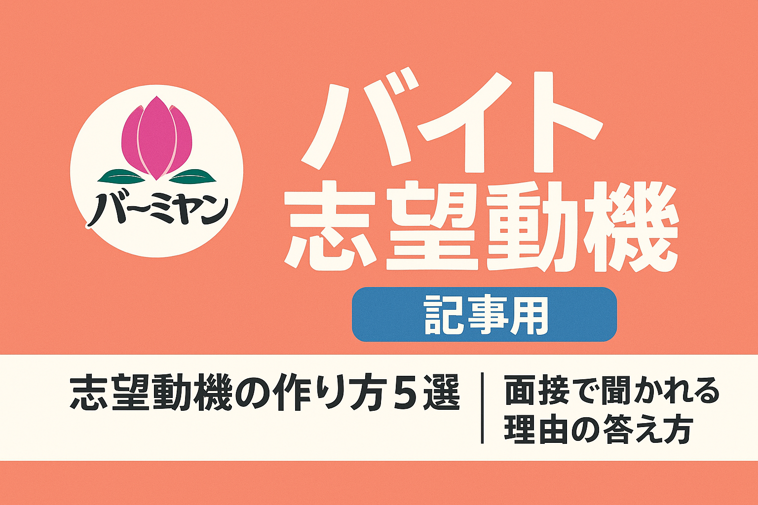 バーミヤンのバイト面接で志望動機が思いつかない人向けに、前向きに伝わる書き方と例文5選を解説。未経験でも使えるテンプレートや自己PRの作り方、面接の注意点までわかりやすくまとめています。