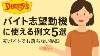 デニーズのバイト志望動機の書き方を、例文5選とテンプレ付きでわかりやすく解説。高校生・大学生も使える面接対策、自己PRの作り方、よくある質問までまとめて紹介。