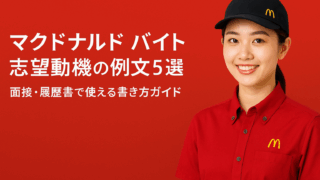 マクドナルドのバイト志望動機が思いつかない人向けに、面接・履歴書で使える例文5選と書き方を解説。高校生・大学生でもそのまま使えるテンプレや好印象に見せるコツも紹介。