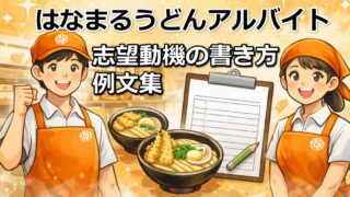 丸亀製麺 バイト 志望動機の例文7選を紹介。未経験でも通る書き方や、面接で聞かれることへの対策、履歴書に短くまとめるコツまで解説します。採用担当者が見るポイントと落ちやすいNG例もわかります。