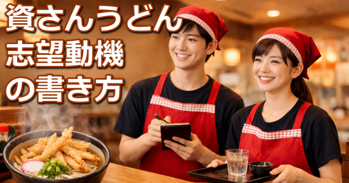 「うどんが好きだから」「家から近いから」といった理由だけでは不安になる人も多いですが、大切なのは立派な動機を作ることではありません。資さんうどんという店の特徴を理解し、その上で自分がどのように働きたいかを具体的に伝えることが評価につながります。